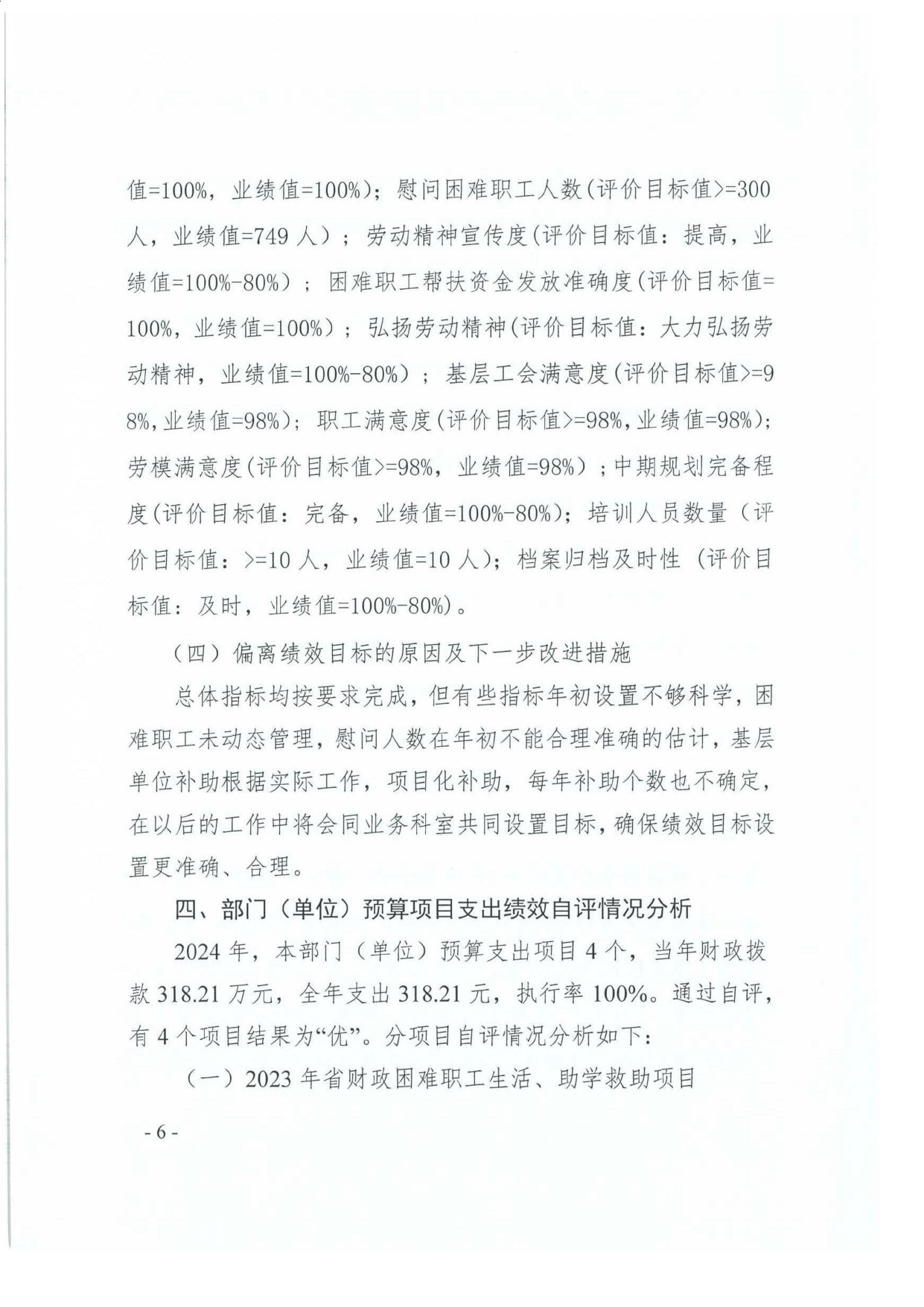 我部门在2024年度部门决算中反映“2023年省财政困难职工生活、助学救助项目”等4个项目绩效自评结果。